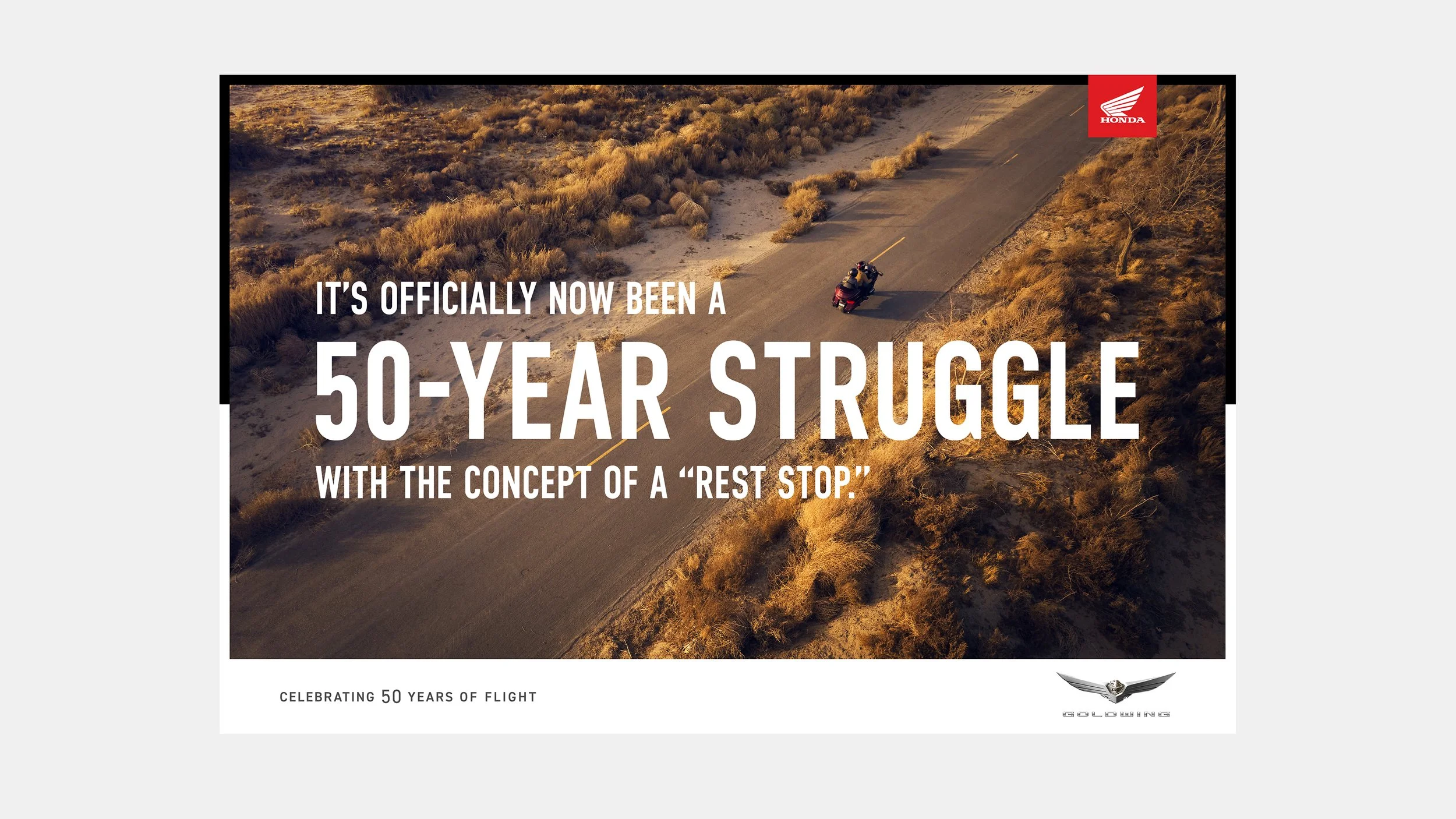 What if you suggested to riders of the singularly iconic Honda Gold Wing touring motorcycle that, in fact, one did not ride this modern marvel of engineering, but rather one flew on it? And what if you injected more joy into communicating its legendary power and performance? Thanks to the incredible partnership forged with Honda, we got to find out. Happy 50th anniversary, Gold Wing.